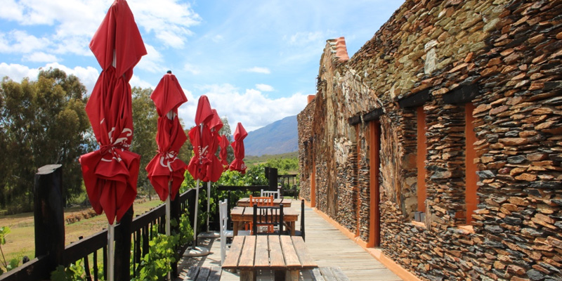 Diners can choose to sit inside in the open plan bar area or outside on the deck with it’s Klein Karoo mountain views.